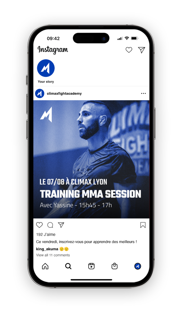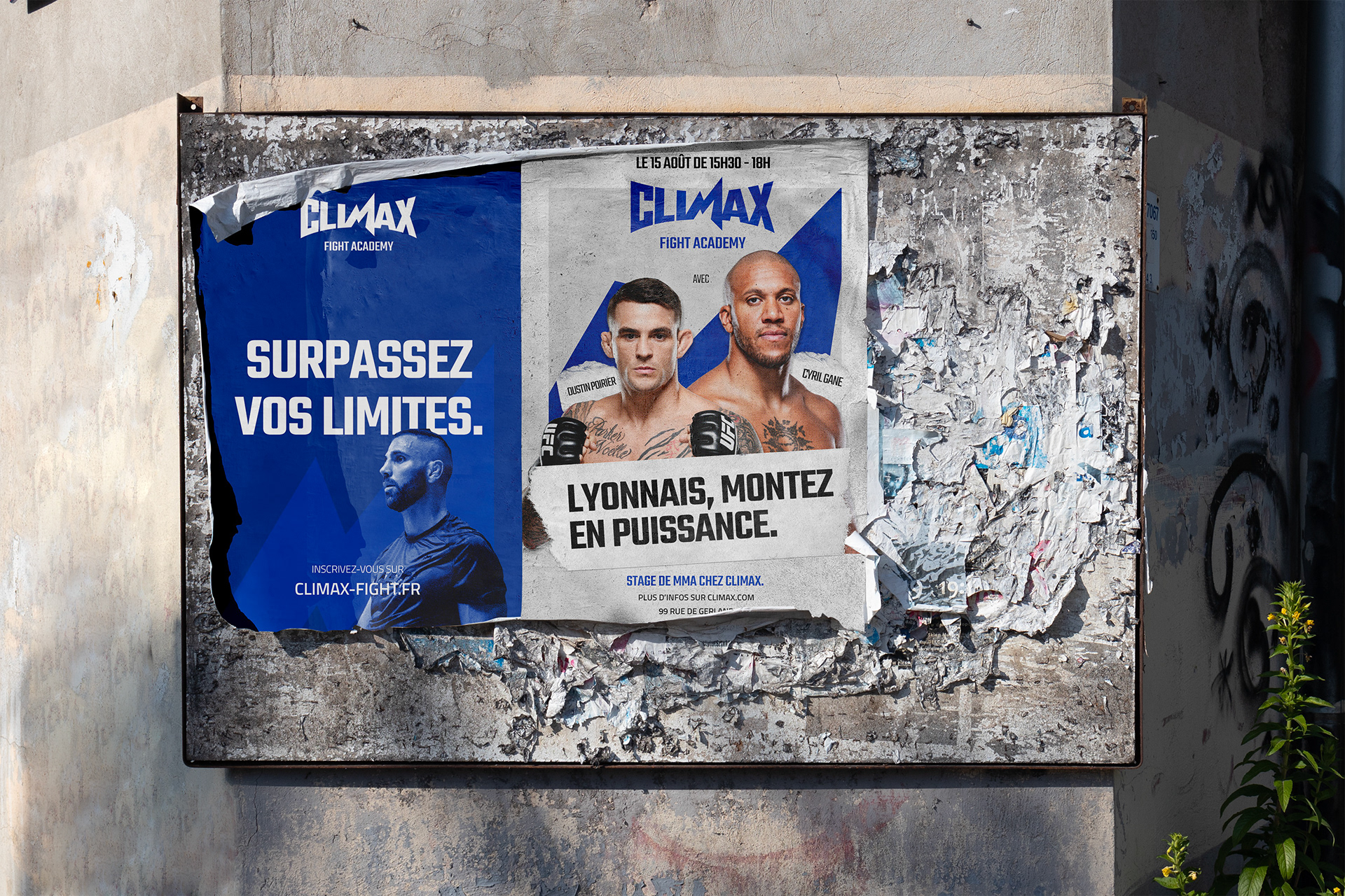 For this project, my client Yacine, manager of Climax, one of the largest MMA clubs in the Lyon area, wanted a full rebrand. The goal was a modern, approachable image that would appeal to everyone, avoiding a closed-off or exclusive feel. The only requirement was to retain the club’s signature blue.